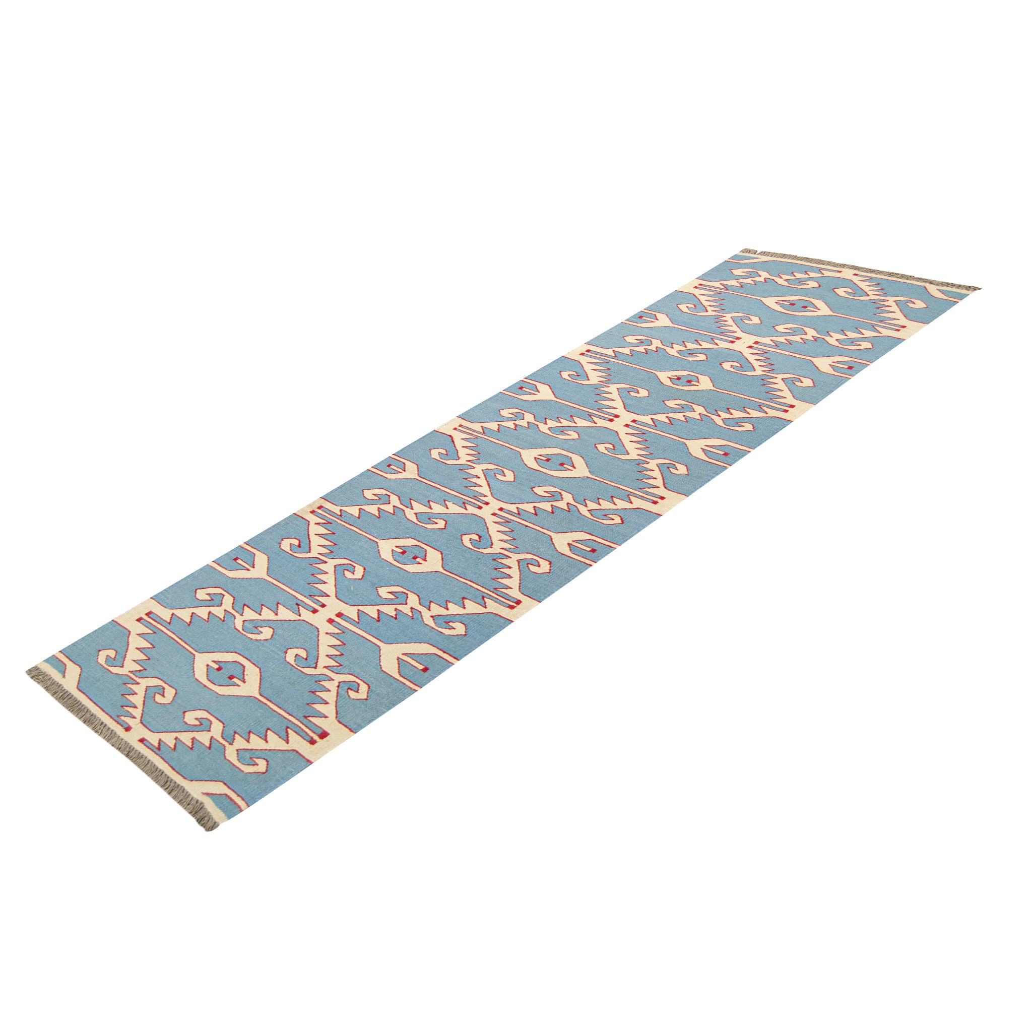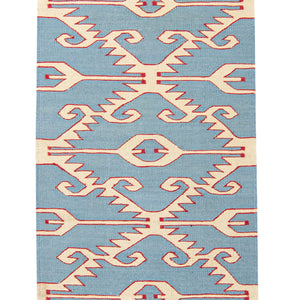 The word Kilim means that it is hand woven rather than hand knotted, so they do not have a pile. They are tribal rugs, using simple motifs for protection and good luck. This design features a checker board of colored diamond shapes.