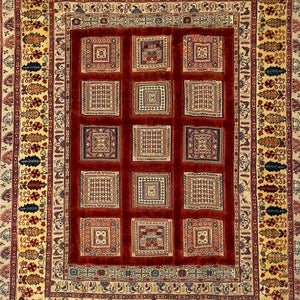 This beautiful tribal Persian rug is woven in Sirjan, a historic town in southern Iran renowned for generations of highly skilled tribal weavers and their deeply rooted artistic traditions. Crafted entirely by hand, this rug is made from soft, high-quality, hand-spun sheep’s wool, which gives it a naturally smooth texture and a warm, organic feel. The colours are achieved using natural vegetable dyes.