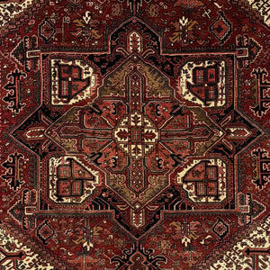 One of the distinctive characteristics of a Heriz rug is its bold and geometric designs. These designs often feature large medallions, stars and intricate borders, which are executed with great precision and artistry. The colors used in Heriz rugs are typically bold and vibrant, with terracotta, blue, green, grey and ivory being common colors.