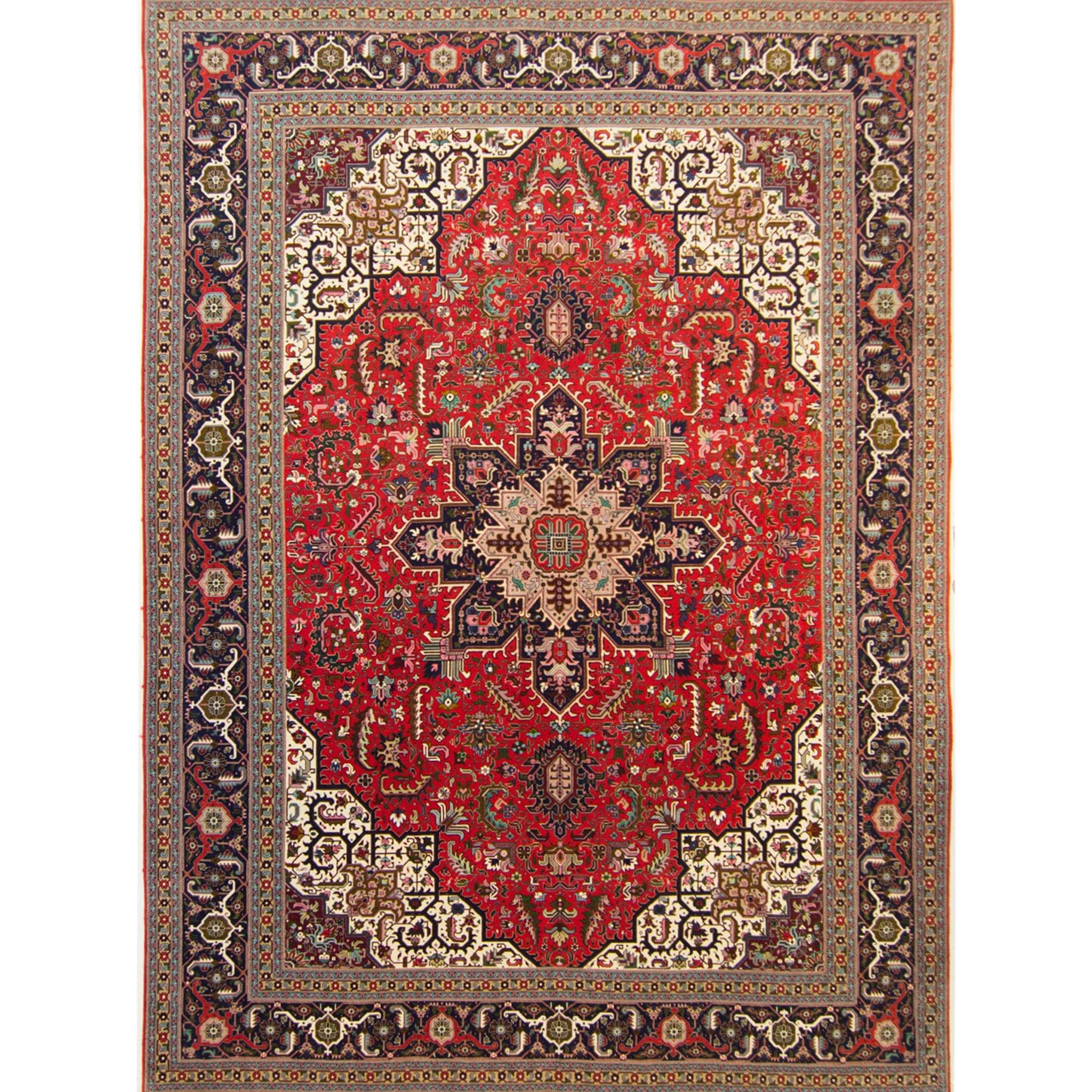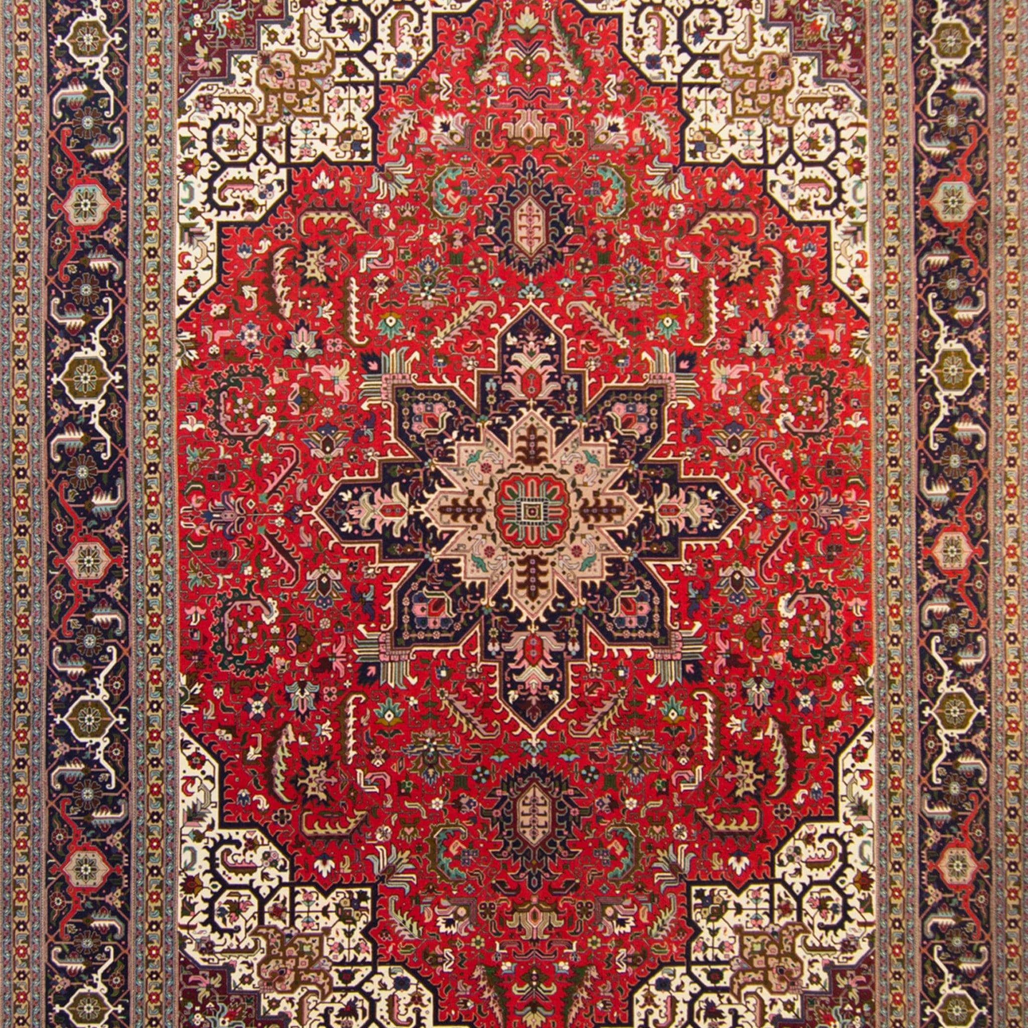 A delightful rug from Tabriz, in northwestern Iran, is renowned for its fine-quality rugs and exquisite designs. Hand-knotted from soft lamb’s wool with exceptionally fine knotting on a cheerful red field, reflecting the skill of Tabriz’s master weavers. A detailed central medallion rests on the cheerful red field, balanced by soft corner motifs and framed with layered borders and guards, creating depth and harmony. With its refined colours and meticulous craftsmanship, this rug brings warmth, character, and timeless Persian elegance to any interior.