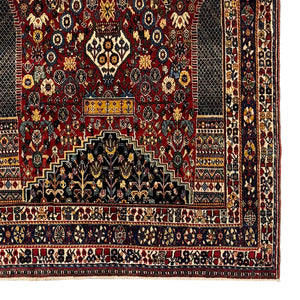 A Shiraz rug is a Persian rug handmade by the Qashqai people in the villages surrounding Shiraz, in the Persian province of Fars. In the 13th century, Shiraz became the leading center of arts and letters. The King encouraged the presence of many Persian scholars and artists. Shiraz was the original area where, the well-known Shiraz grapes are grown. Tribal in design and hand-knotted in 100% wool. Various plants and natural materials are used for dying wool.
