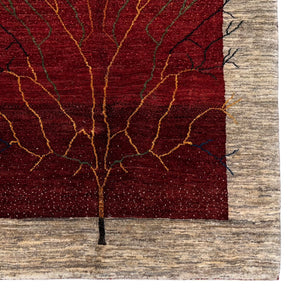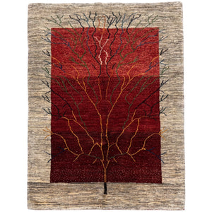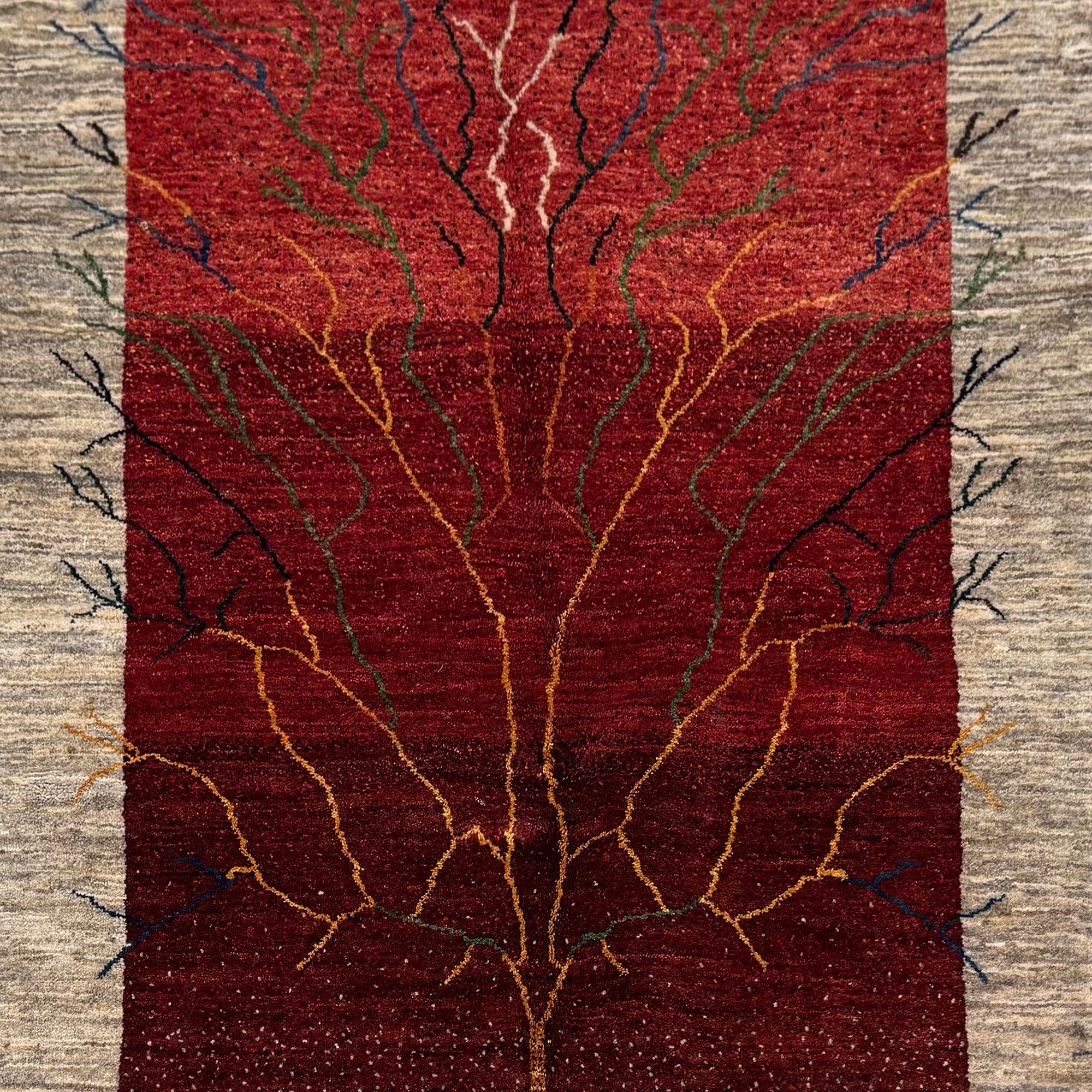 Hand-knotted by Qashqai weavers in southern Iran, this Persian Gabbeh rug is made from pure sheep’s wool and coloured with natural dyes. Its striking Tree of Life design represents growth, harmony and connection, themes deeply rooted in Persian culture.