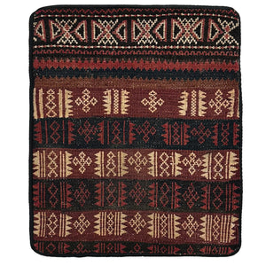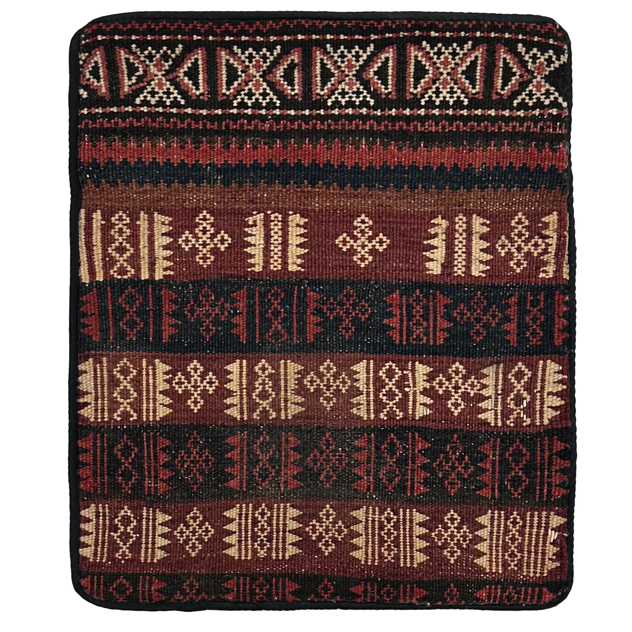Made from pure wool, this Kilim cushion features earthy tones of terracotta, black, and beige. Its warm, natural palette adds depth and texture to any space. It’s finished with a durable cotton backing and a quality zipper for lasting use.