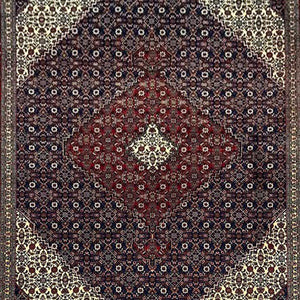 Featuring a fine knot density, the rug displays the timeless Herati design, a repeating floral and diamond motif centred around a medallion, framed by a series of intricate borders.